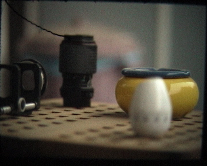 Der so entstandene Minolta-Umbau war nun mein eigentlicher 35mm-Adapter. An der Rückseite war zusätzlich ein Balgen befestigt. Dieser wiederrum hatte ein passendes Schraubgewinde (aus einem Polfilter entnommen) für meine damalige MiniDV Kamera MV530i von Canon. So ließ sich der Adapter an der Videokamera befestigen und konnte ohne Störungen durch Lichteinfall von der Mattscheibe auf der Kamerarückseite abfilmen. Das erste Bild, dass ich damit aufgenommen habe zeigt sehr schön die geringe Schärfentiefe, die mit einer normalen MiniDV Kamera damals nicht so zu erzielen war:
